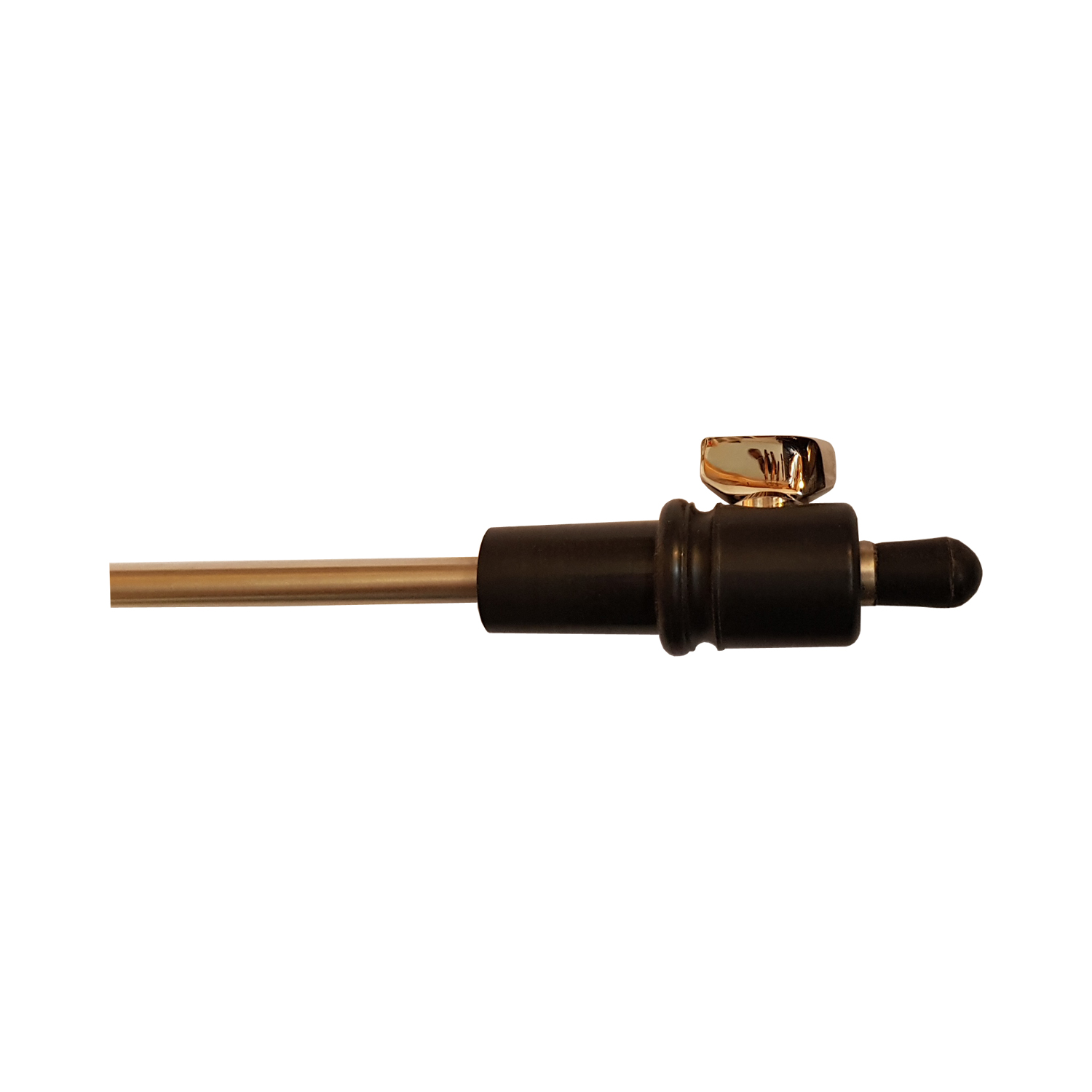 Die Ebenholzbirne gibt es mit einem versilberten Nickelstab. Der Schraubmechanismus zum öffnen und lösen des Stabes befindet sich an der Seite. Er verhindert Beschädigungen des Stabes. Lange Haltbarkeit und hohe Festigkeit sind so garantiert